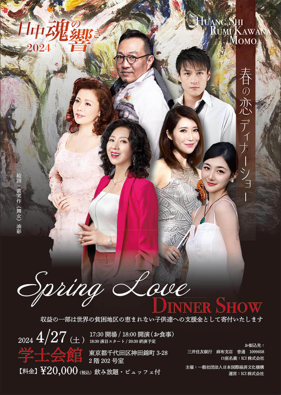 ゴールデンウィーク初日の4月27日の夜、東京の学士会館で日本国際経済文化機構主催の「日中魂の響き2024~春の恋チャリティーディナーショー」公演が開催され、大盛況のうちに終了しました。国内外から100人以上の各界の政界・財界・日中友好団体の関係者が集い、チャリティーコンサートの成功に高い評価が寄せられました。